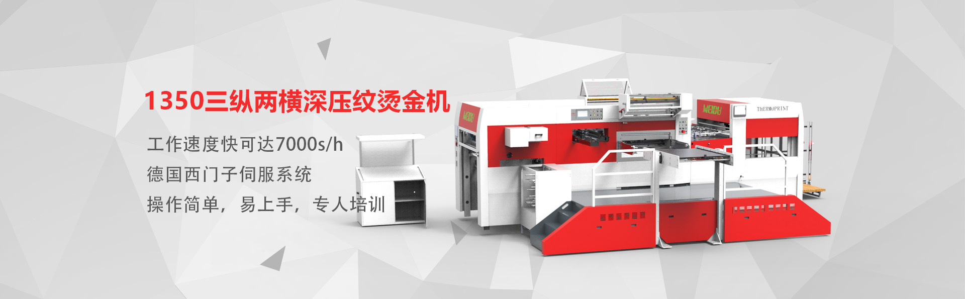 全自動燙金機,壓紋機廠家,模切機-山東美度印刷設備有限公司山東美度印刷設備有限公司是一家從事機械研究和制造的企業,主要產品包括全自動平壓平三縱燙金機、全自動平壓平三縱兩橫燙金機、全自動平壓平深壓紋模切機、全自動平壓平深壓紋燙金機、全自動平壓平模切機等系列產品。經過多年的發展,公司現已擁有多名的工業研發設計人員、經驗豐富的生產安裝人員及嚴謹認真的質量檢驗人員,從外購件檢驗、零部件加工、整機裝配、出廠檢驗等各個流程均有嚴格質量保證,從而保障了所生產設備的品質。